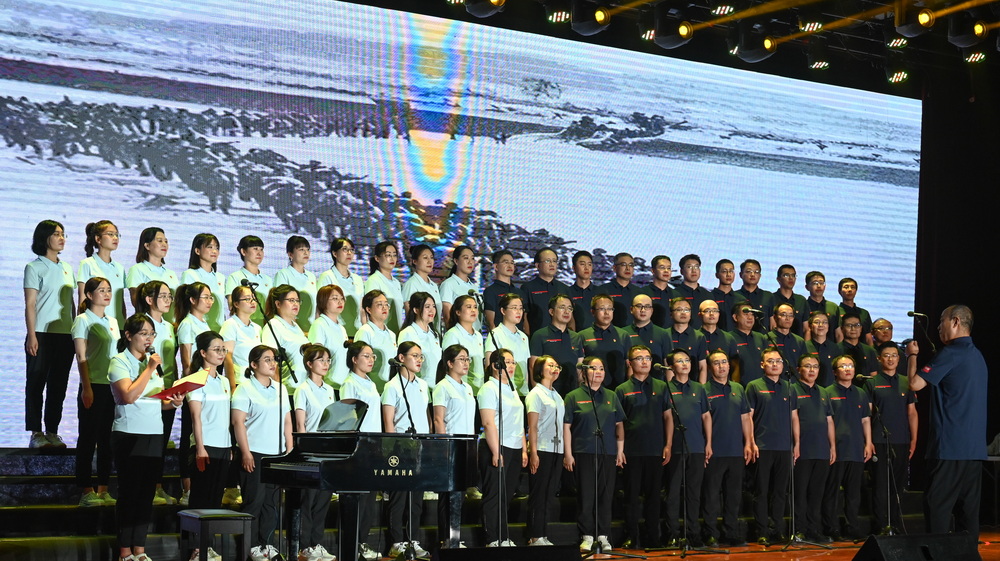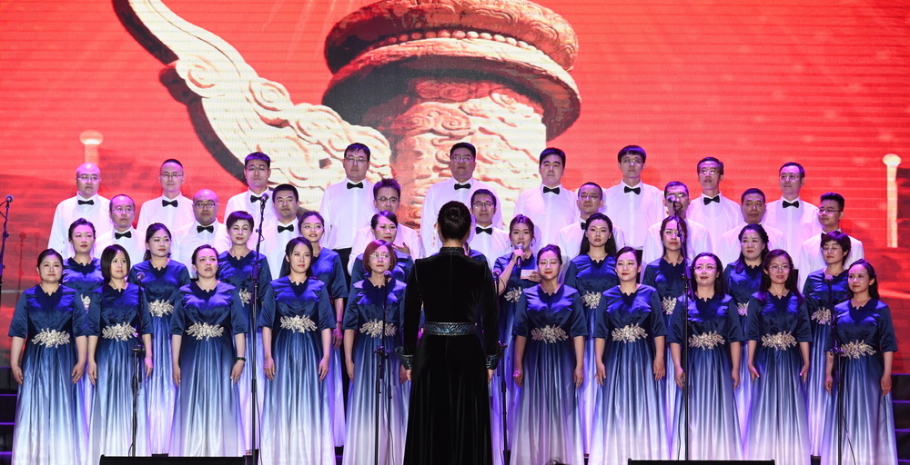 “打天下坐江山,一心为了老百姓的苦乐酸甜。谋幸福送温暖,日夜不忘老百姓康宁团圆。老百姓是地老百姓是天,老百姓是共产党永远的挂念……”舞台上,《江山》《黄河大合唱》《英雄赞歌》《天边》《唱支山歌给党听》《国家》《歌唱祖国》《天耀中华》《天边》《中国人民志愿军军歌》《打靶归来》《不忘初心》《歌唱祖国》《我爱祖国的蓝天》《莫尼山》《祖国不会忘记》《走向复兴》《在灿烂阳光下》《守望相助》《赞歌》《走向复兴》等歌曲依次精彩上演,歌声时而婉转悠扬、时而昂扬激越、时而雄壮威武,引燃了现场观众心中那份不朽的红色记忆。