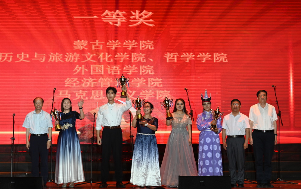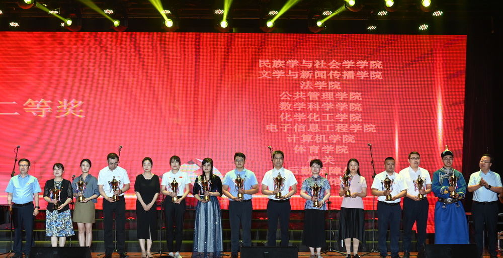 经过激烈角逐,生命科学学院、生态与环境学院、我院获得了特等奖,蒙古学学院、历史与旅游文化学院、哲学学院、外国语学院、经济管理学院、马克思主义学院获得了一等奖,民族学与社会学学院、文学与新闻传播学院、法学院、公共管理学院、数学科学学院、化学化工学院、电子信息工程学院、计算机学院(软件学院)、体育学院、机关部门、后勤保障处、图书馆获得了二等奖。与会校领导分别为获奖单位进行了颁奖。