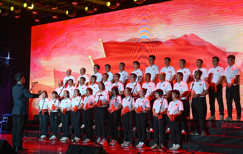 为庆祝中国共产党成立102周年,深入学习贯彻习近平新时代中国特色社会主义思想主题教育,全面展示学校教职工在学校高质量发展新征程中的时代风采,激发广大教职工热爱党、热爱祖国、热爱社会主义的热情,6月30日下午,学校在玉泉校区西院文体馆举办“建功新时代 奋进新征程”庆“七一”教职工合唱比赛。校党委书记刘志彧,纪委书记、监察专员张利平,副校长额尔很巴雅尔、高光来、刘永斌、杜晓东,校党委委员、学院党委副书记、院长白托娅及各职能部门负责人,各学院党委书记、院长现场观看了演出。
